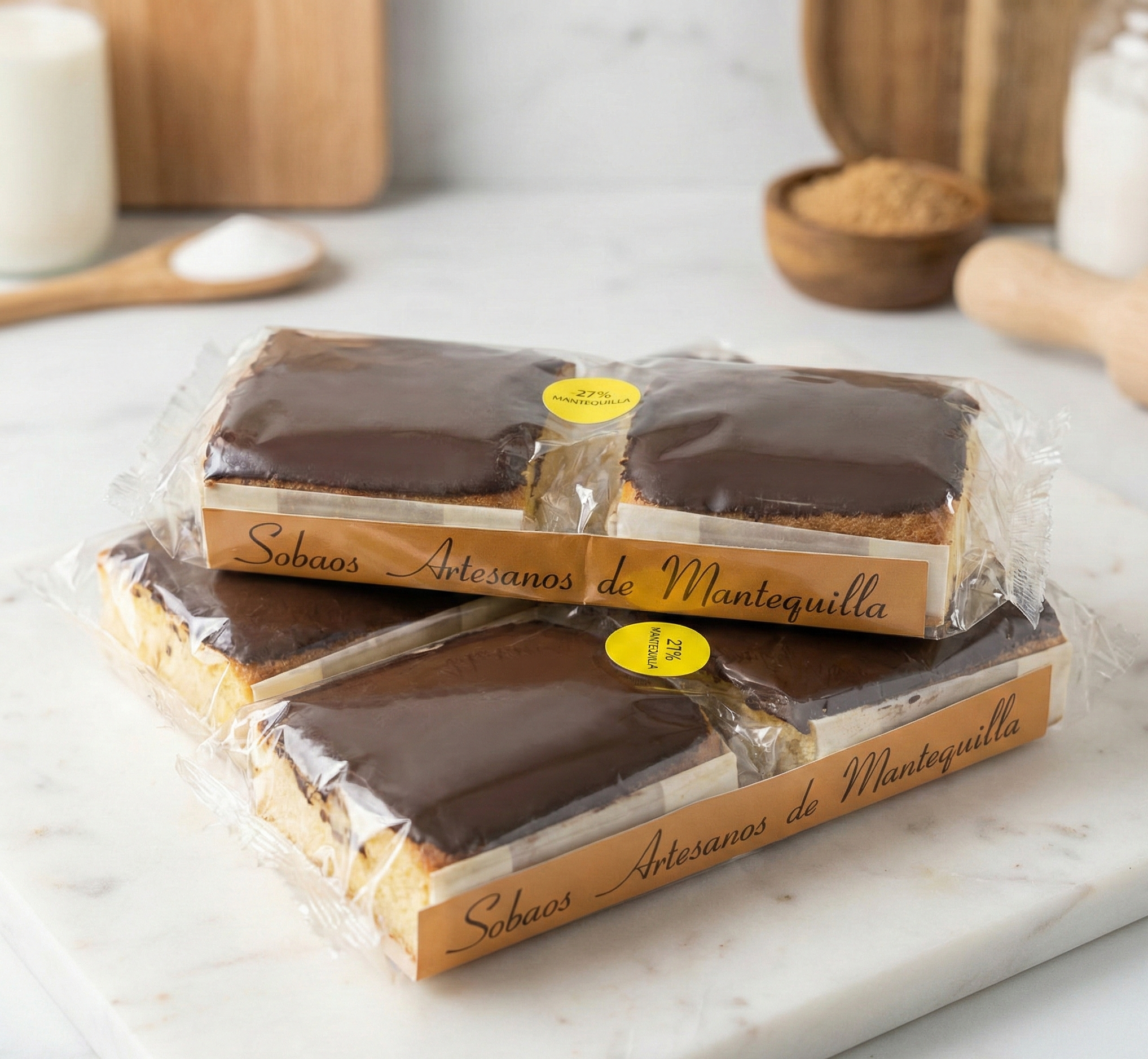 INGREDIENTES: Harina de TRIGO, Azucar, HUEVO, MANTEQUILLA 27% (nata pasteurizada y fermentos lacteos), Impulsor (Gasificantes E450i, E500ii, antiaglomerante E-170 y fécula de patata), Jarabe de azúcar, Conservadores (E-200 y E-202) y cobertura chocolate 60%.